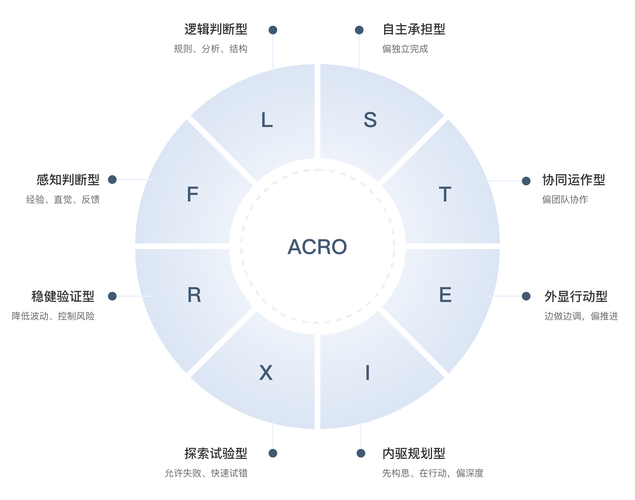 ACRO测试将人格分为16种类型,每种类型都有其独特的优势、特点和适合的领域。探索不同的人格类型,更好地找到自己在职场的定位。